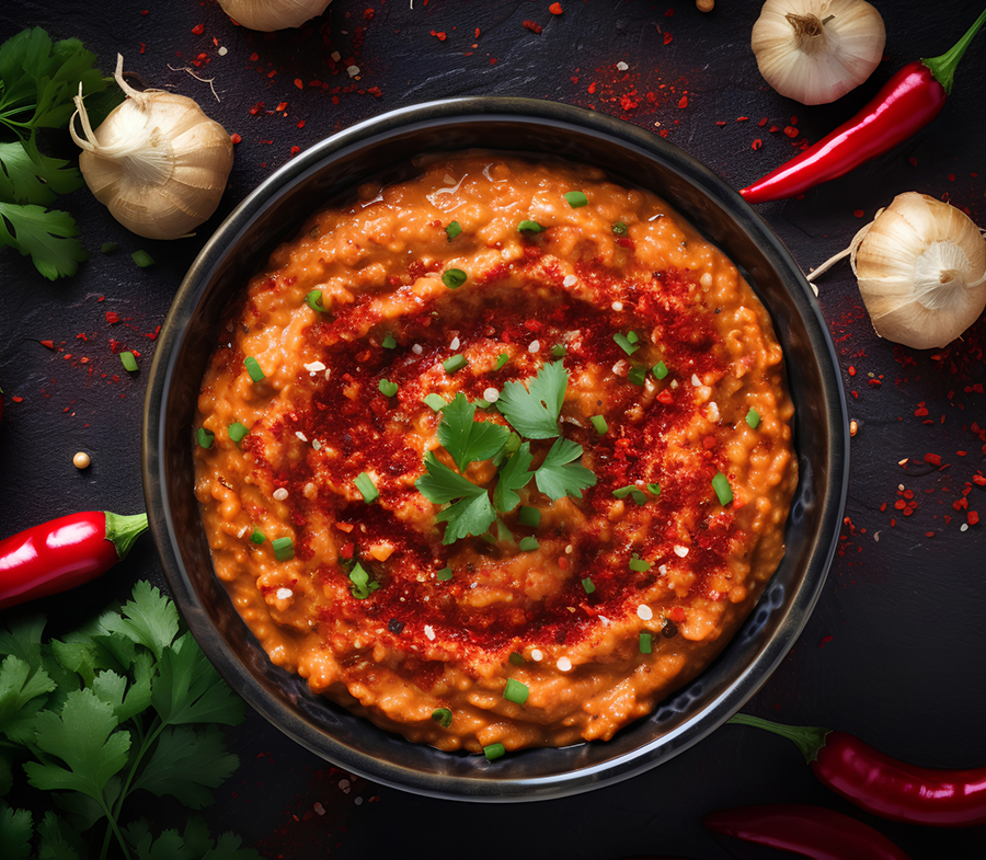 Red Chilli Spiced Hummus (Byadgi Twist)