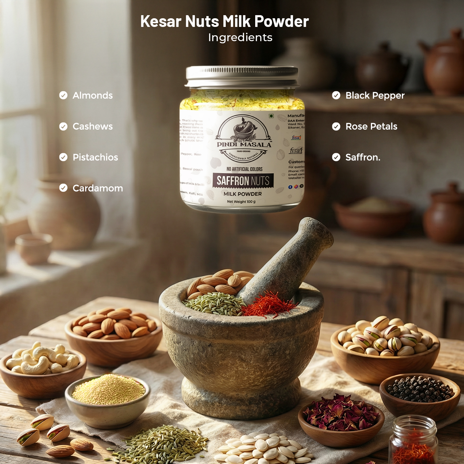 Pindi Masala Beverage & Digestive Combo (Chai Masala, Kesar Nuts Milk & Churi Saunf)